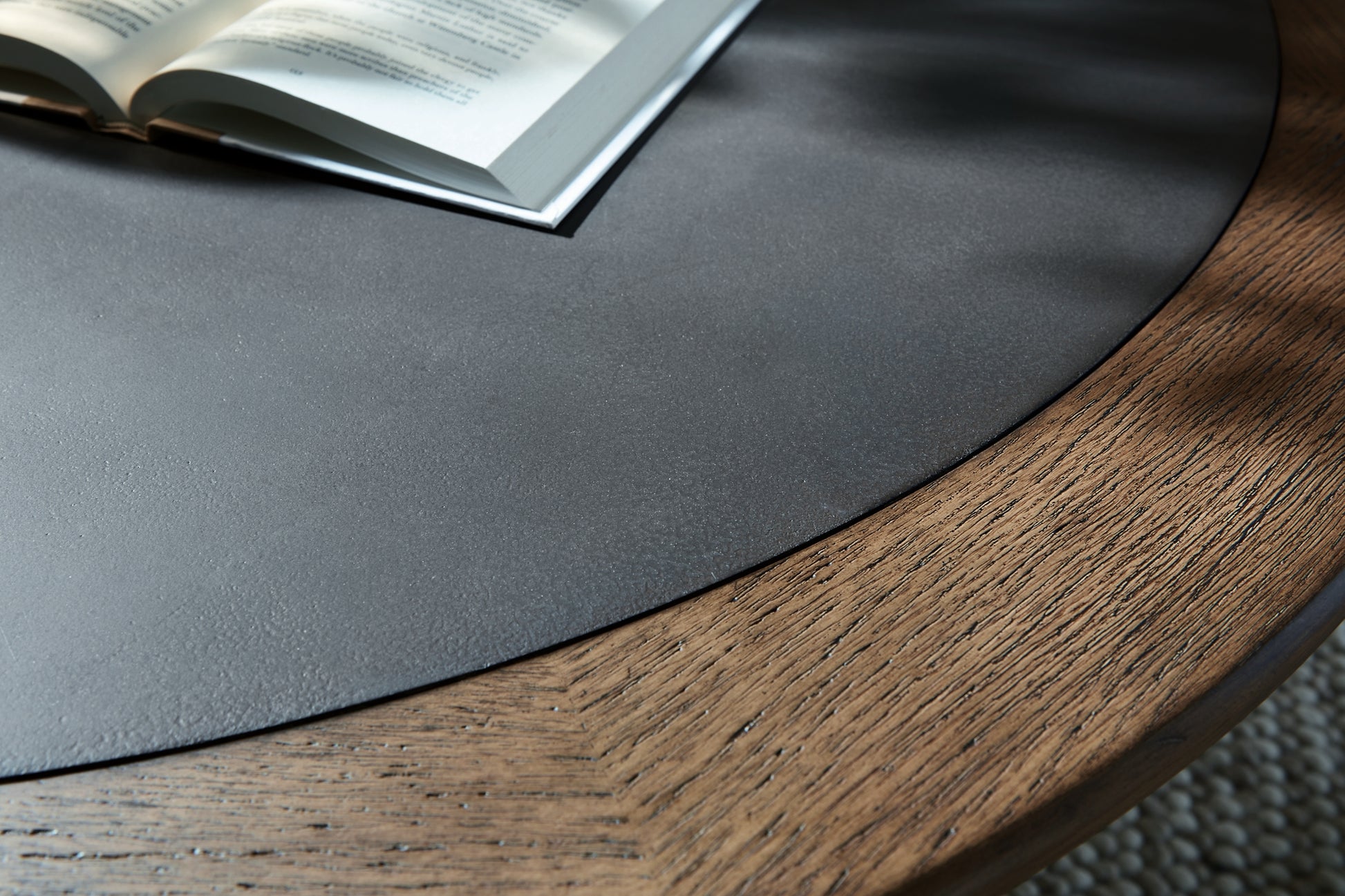 | Details | Made with solid wood components, paulownia veneer, and MDF substrate and composite tile, Warm brown wood-tone finish, Top with dark gray faux cement inset, Round base, Assembly required | |