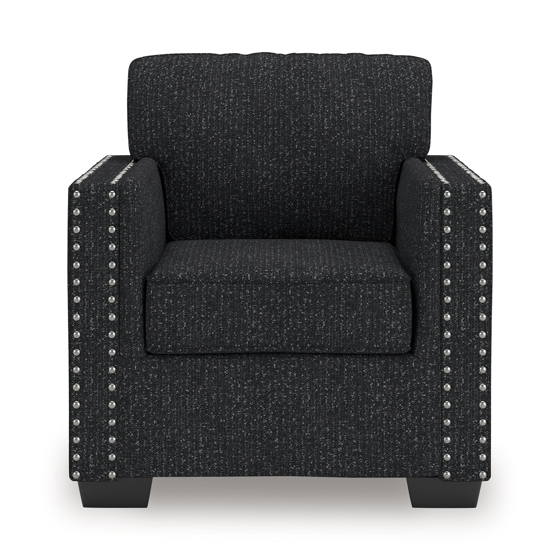 This stunning chair leaves a lasting impression. Its cozy cushions, chic coal-colored upholstery and striking nailhead trim are a perfect blend of comfort and contemporary design. And here’s the showstopper—ambient red, white and blue LED lighting along the chair's base. The look is simply wow.